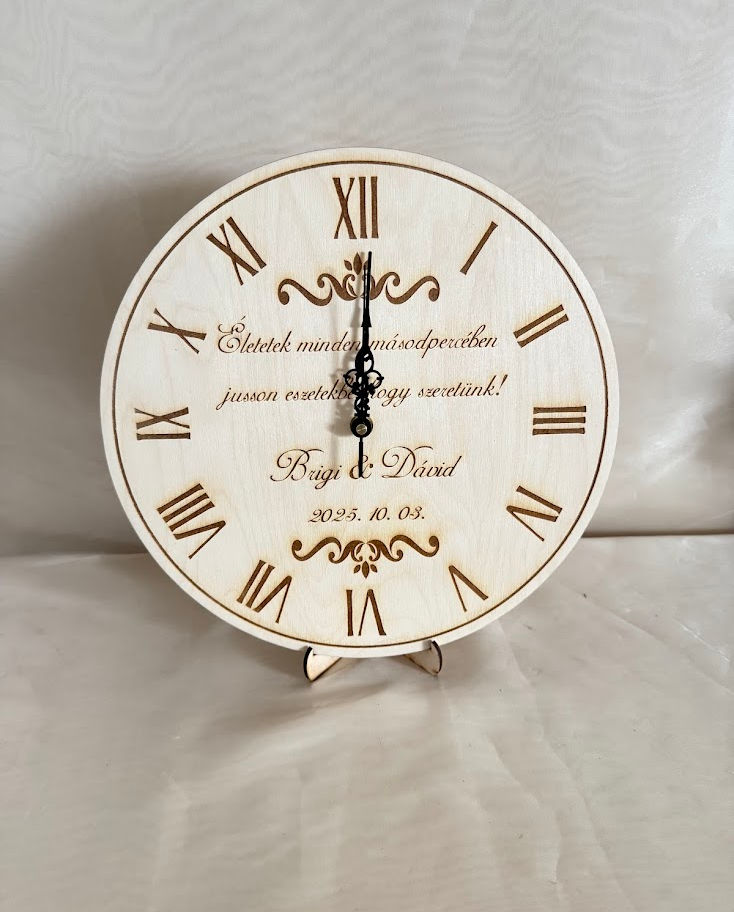 A szertartás során, a kimondott igenek időpontjában közösen indítjátok el az órát – melybe a vőlegény az elemet teszi, a menyasszonny a pontos időt állítja be – ezzel jelképezve közös életetek kezdetét. Ahogy a kismutató nem működhet a nagymutató nélkül, úgy fonódik össze a Ti életetek is ezután a házasság szövetségében.